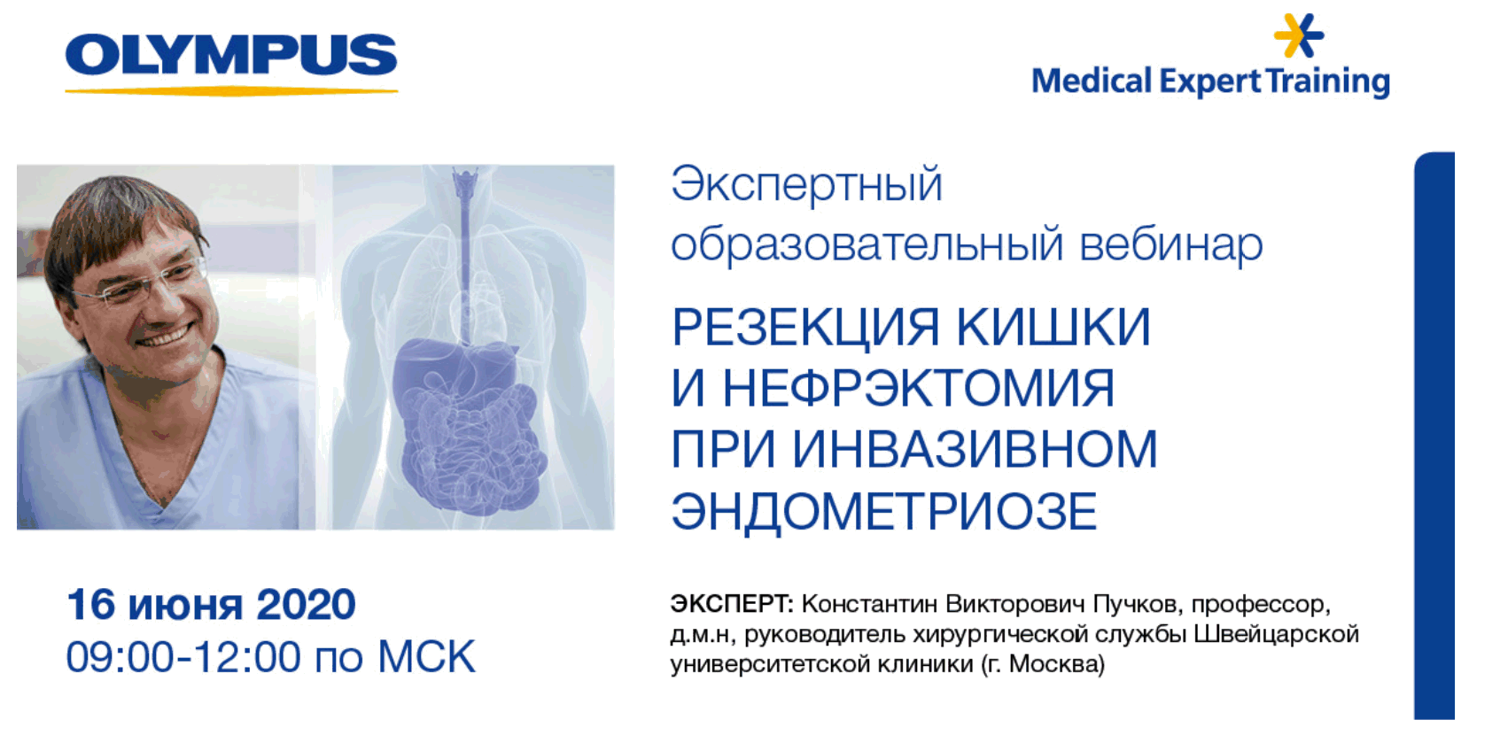 В продолжение образовательных проектов компании Olympus мы рады анонсировать вебинар по теме "Резекция кишки и нефрэктомия при инвазивном эндометриозе".