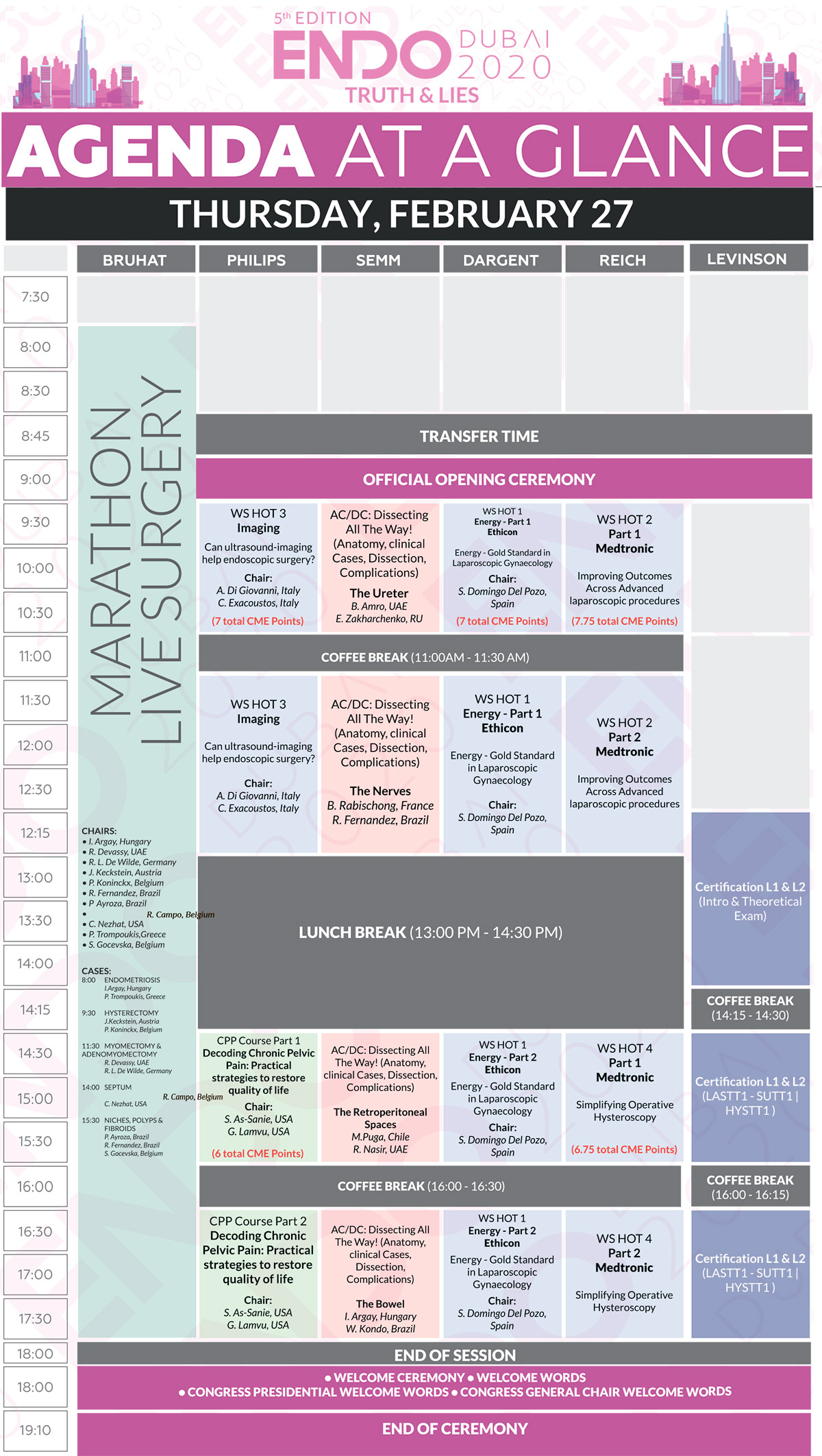 Профессор Арно Ваттьез и его команда в 5-й раз организовали с 27 по 29 февраля 2020 г. в Дубае одну из самых интересных конференций по мини инвазивной хирургии в гинекологии "ENDO Dubai 2020”.