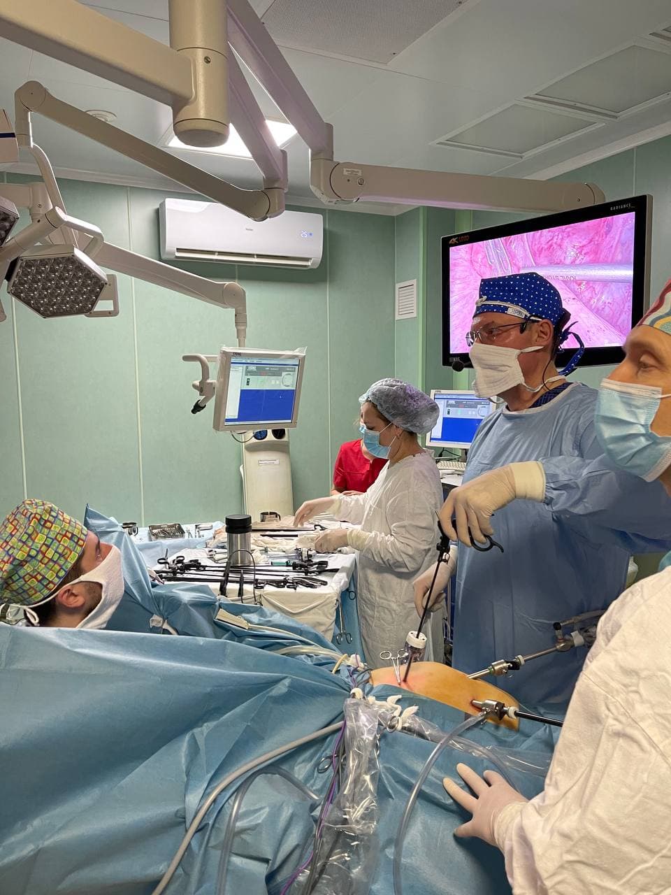 Во время лапароскопии профессор показал анатомию малого таза, расположение сосудов и мочеточников, тазовых нервов. Указал на изменение топографической анатомии трубчатых структур малого таза при инвазивном эндометриозе.