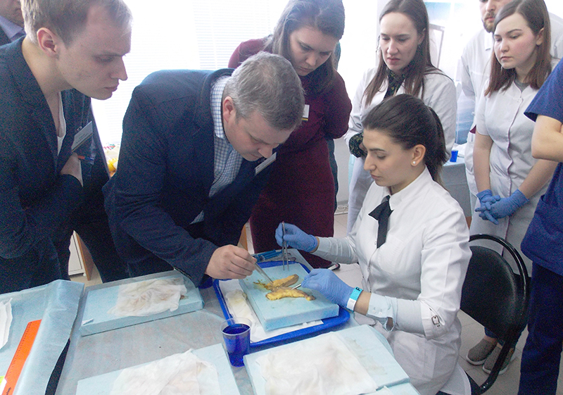 Отвечая на вопрос, почему в состязаниях участвуют и аспиранты, и клинические ординаторы, и студенты, Дмитрий Константинович ответил, что такое соединение демонстрирует непрерывность обучения хирурга. Оно начинается со студенческой скамьи, переходит в ординатуру и аспирантуру с последовательным совершенствованием навыков и накоплении знаний. Когда в одном кабинете работают аспирант и студент, то последний видит, какого результата он может достигнуть при усердии. Самый молодой участник команды хочет не только закрепиться в ней, но и превзойти более опытных товарищей. Соревнование как нельзя лучше способствует этому.